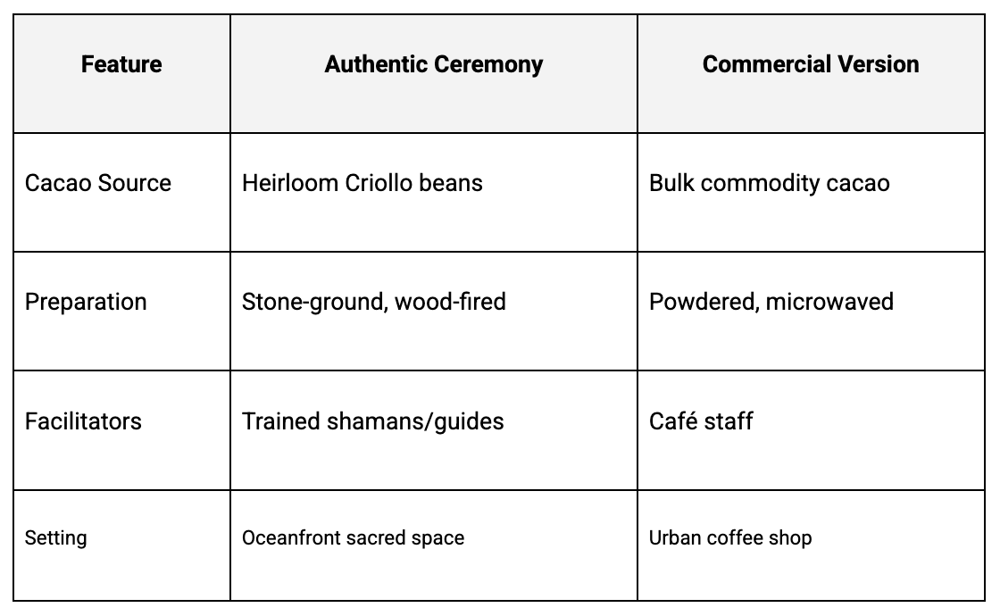 A: Ceremonial cacao uses heirloom Criollo beans, sustainably sourced from ancestral farms, and contains no additives like sugar or dairy. It’s stone-ground to preserve nutrients and prepared as a bitter, nutrient-dense paste. Store-bought chocolate often mixes lower-quality Forastero beans with processed sugars and fats, diluting its therapeutic effects.